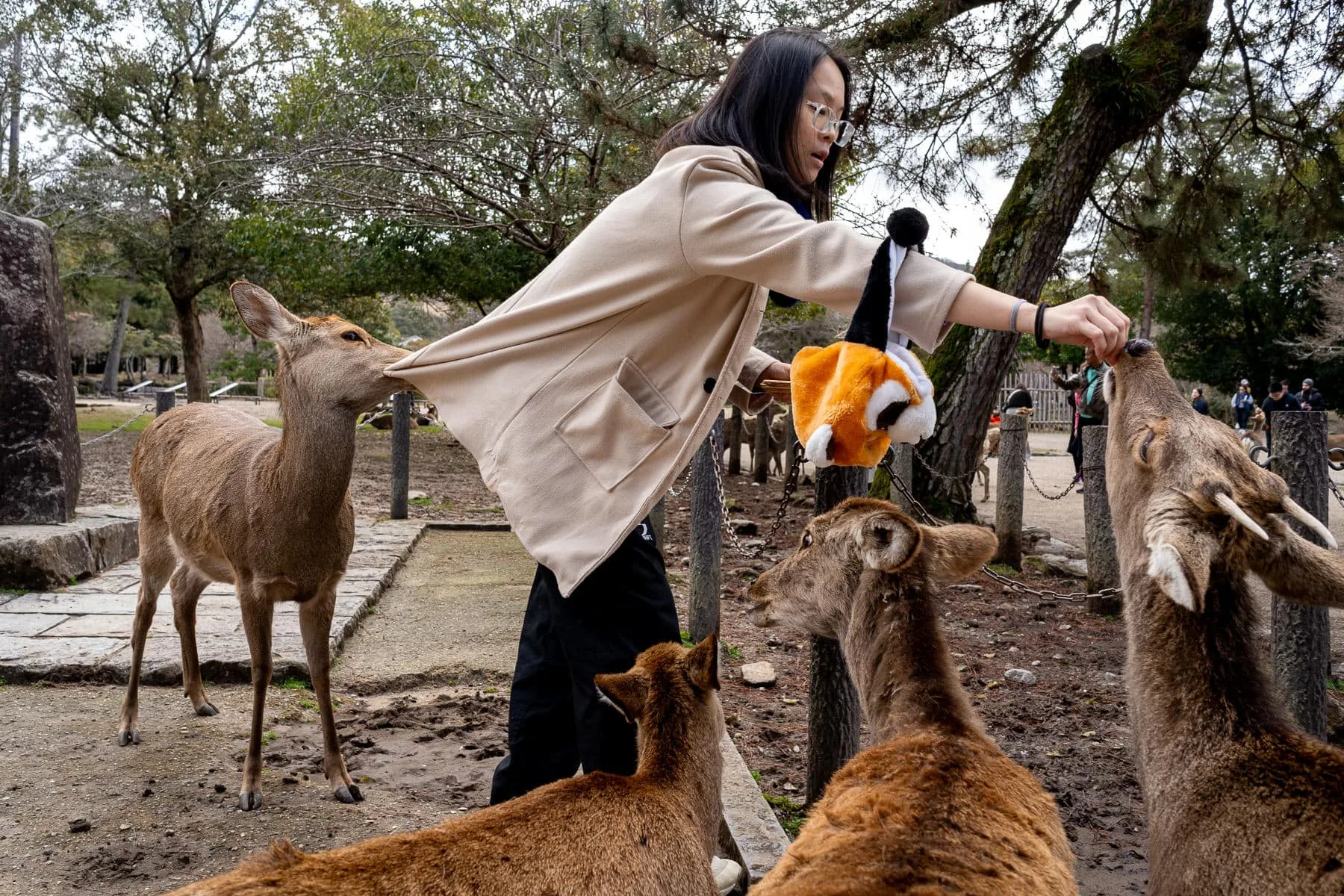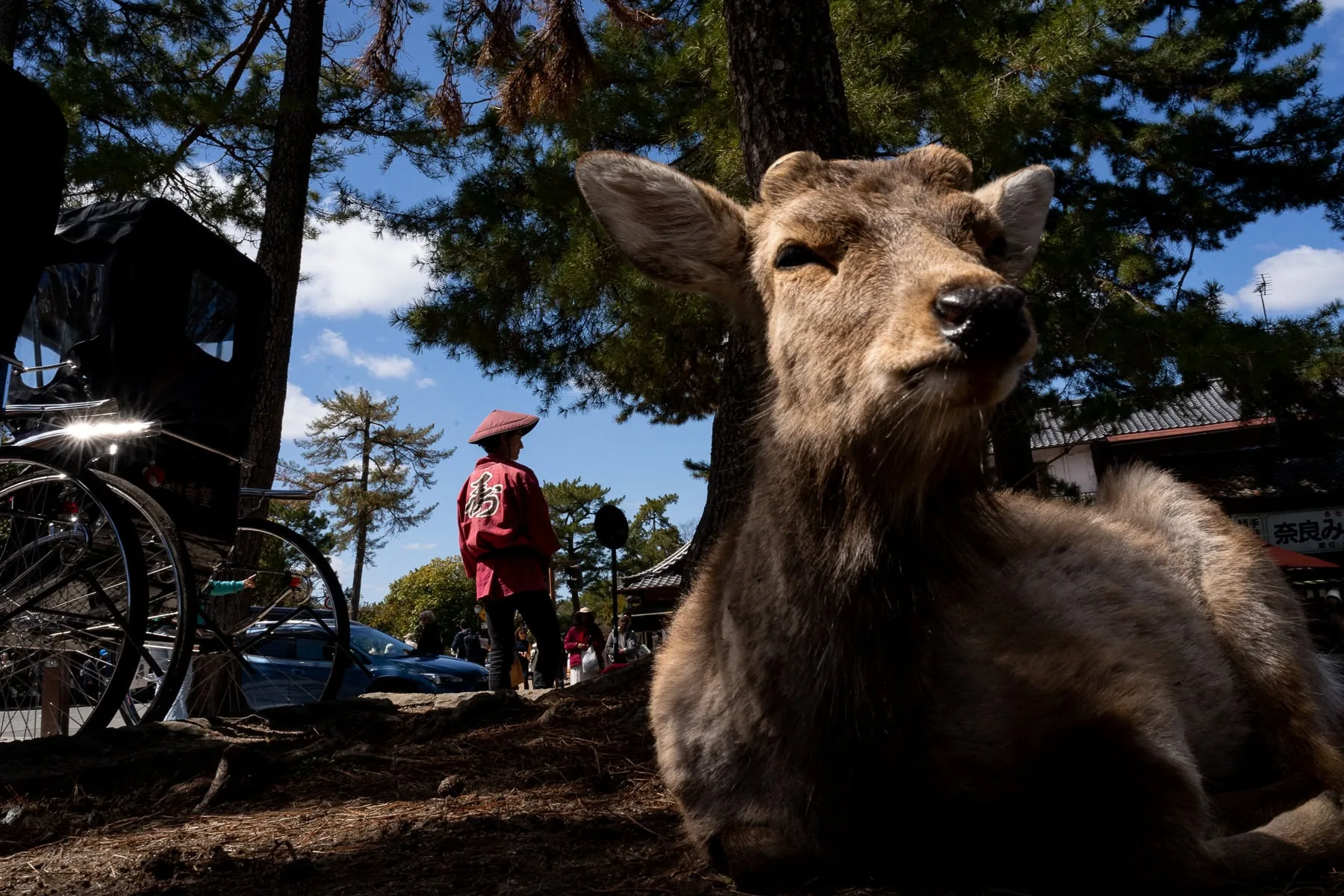 For any street photographers visiting Japan, I highly recommend checking out Nara Park (easily accessible from Kyoto or Osaka) which turned out to be a surprisingly fun playground for street. This is where all the photos with deer were taken (in case you were curious). Go early, ie 7/8 am, because later in the morning, the deer are full and rest, and the tourists arrive in force.